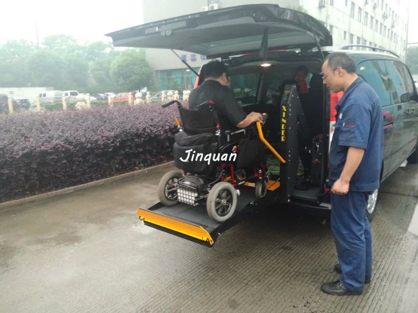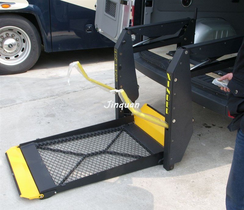 商務(wù)車載型無障礙升降平臺www.jmlaowu.com采用鋼結(jié)構(gòu)平行四邊形結(jié)構(gòu),液壓驅(qū)動,安裝于汽車尾部提供殘疾人輪椅車上下汽車的專用提升平臺,平臺前后各裝有安全翻板以防輪椅車在提升過程中滑落,平臺設(shè)有控制面板便于使用者方便操作,在汽車內(nèi)部裝有手動控制手柄,在升降平臺斷電或電控故障時通過手柄人工機(jī)械操作平臺升降,使用后平臺可旋轉(zhuǎn)放置,不占空間。