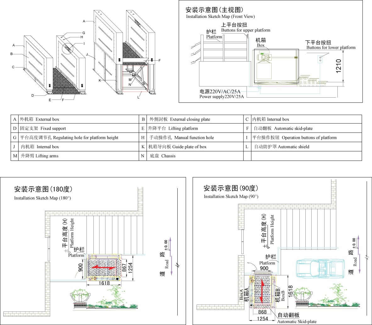 安裝方式: 無(wú)基坑式安裝,直接固定于混凝土地面